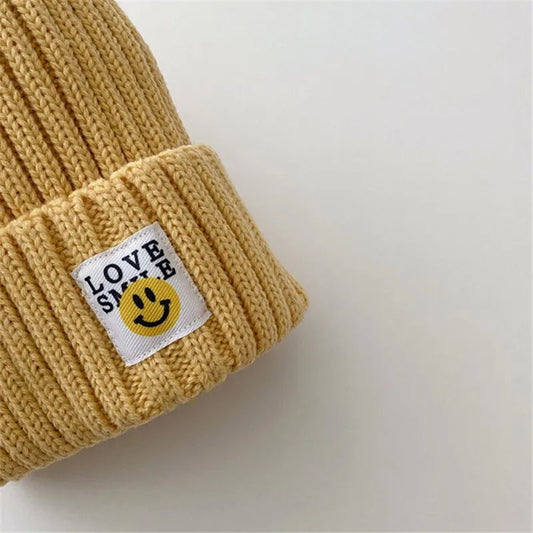 Baby Toddler Ribbed Knit Smile Face Beanie "LOVE SMILE"